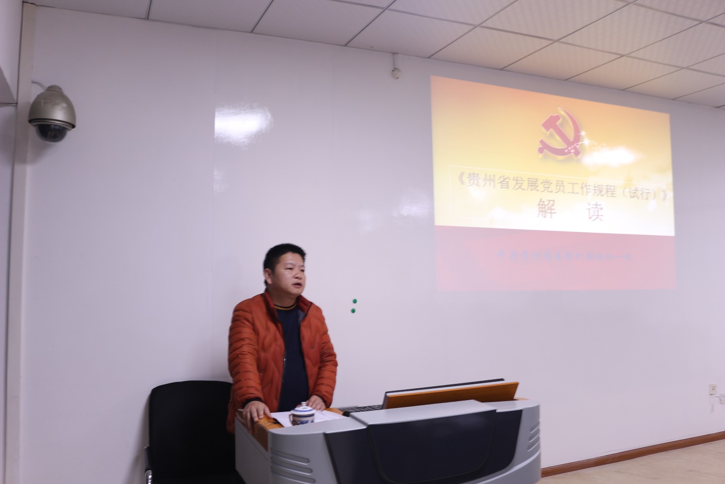黨委副書記代祥社領(lǐng)學(xué)了《貴州省發(fā)展黨員工作規(guī)程(試行)》。代書記介紹了《規(guī)程》的幾項(xiàng)主要特點(diǎn)。他提出,學(xué)習(xí)《規(guī)程》是貫徹落實(shí)好中央關(guān)于發(fā)展黨員工作的要求,規(guī)范發(fā)展黨員工作的必要要求,支部黨員干部必須全面透徹了解黨員發(fā)展工作的具體程序,確保發(fā)展黨員工作更加規(guī)范。
