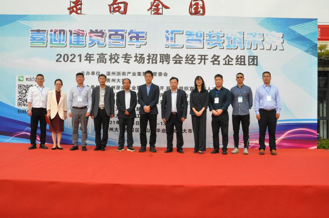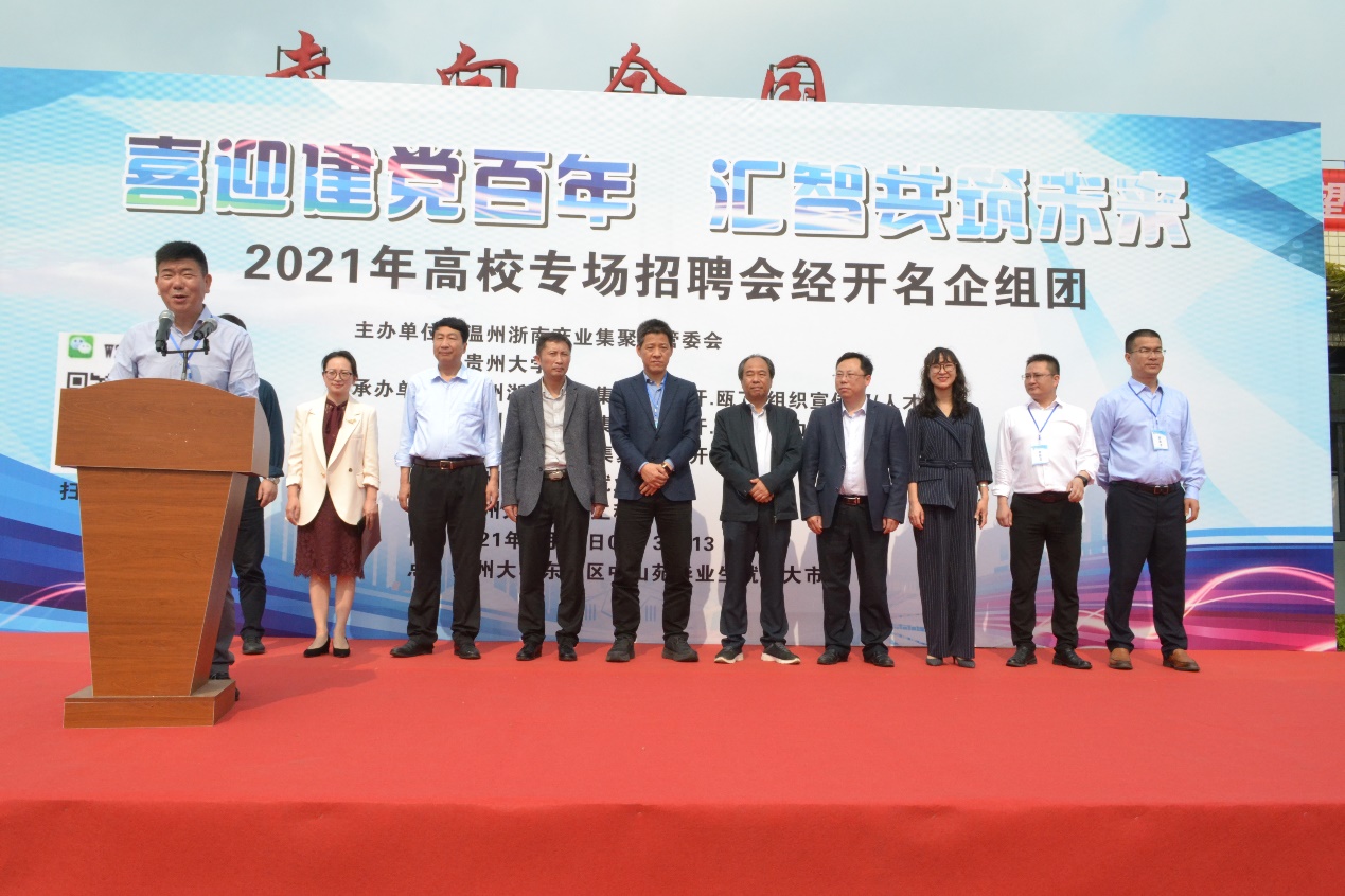 啟動(dòng)儀式上,貴州大學(xué)招生就業(yè)處主要負(fù)責(zé)人王忠於致辭。他首先介紹了貴州大學(xué)及機(jī)械工程學(xué)院的相關(guān)情況,他指出,貴州大學(xué)是部省合建和“雙一流”高水平大學(xué),機(jī)械工程學(xué)院擁有國(guó)家級(jí)和省級(jí)特色重點(diǎn)學(xué)科,具有現(xiàn)代制造技術(shù)教育部重點(diǎn)實(shí)驗(yàn)室、全國(guó)高校實(shí)踐育人創(chuàng)新創(chuàng)業(yè)基地,是國(guó)家機(jī)械工程類(lèi)培養(yǎng)了大量高層次人才。希望借助此次活動(dòng),浙南沿海先進(jìn)裝備產(chǎn)業(yè)集聚區(qū)各企事業(yè)單位能在貴州大學(xué)招收到大量的優(yōu)秀人才。