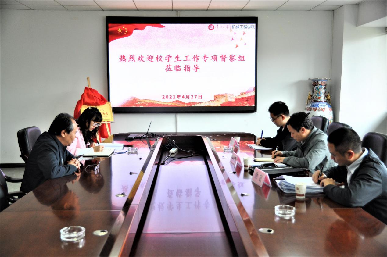 機械工程網(wǎng)站訊(記者 李曉成|攝影 鄒醒佳)根據(jù)貴州大學(xué)《關(guān)于開展學(xué)生工作專項督查的通知》要求,貴州大學(xué)督查組于2021年4月27日到機械工程學(xué)院開展輔導(dǎo)員、班主任工作履職情況的專項督查。機械工程學(xué)院于中午1點在機械樓518舉行了在校學(xué)生工作專項督查工作座談會,組長由建筑與城市規(guī)劃學(xué)院黨委副書記趙家君擔(dān)任,成員是建筑與城市規(guī)劃學(xué)院學(xué)生科科長晏超和校學(xué)生處老師李成龍,機械工程學(xué)院黨委書記安明剛、黨委副書記廖燁、學(xué)生科輔導(dǎo)員、各年級班主任出席會議。