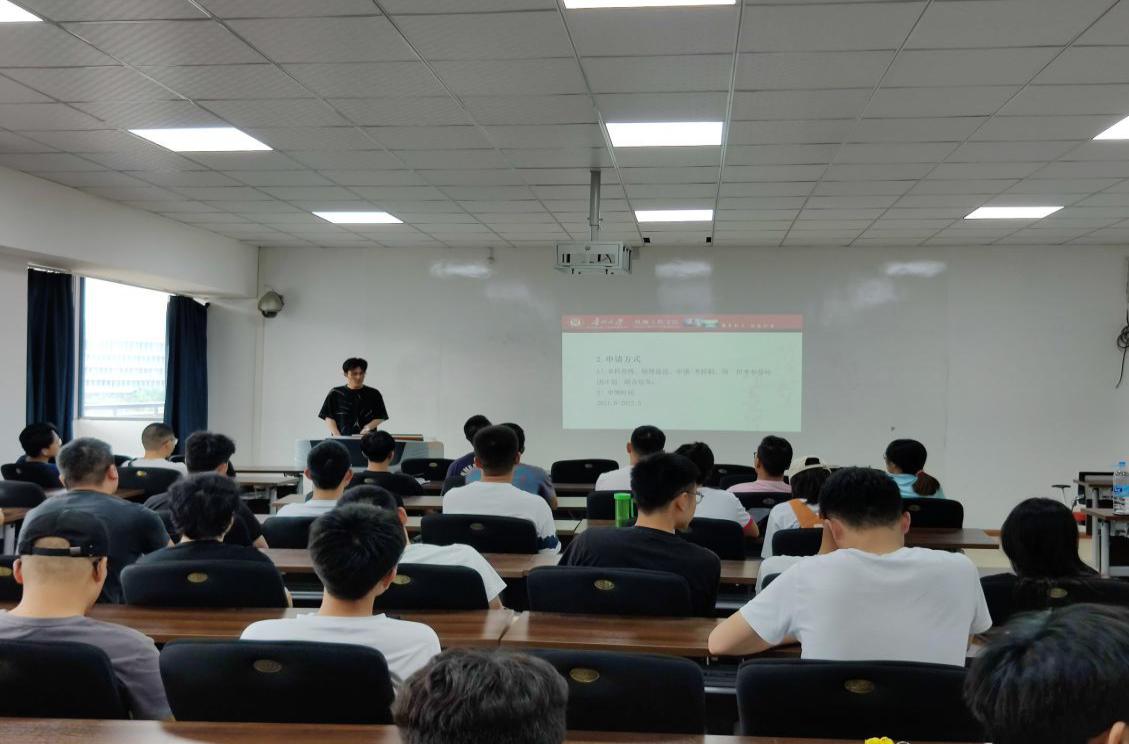 胡小龍,系學(xué)院機械工程專業(yè)學(xué)生,現(xiàn)已成功考取湖南大學(xué)博士,在校期間發(fā)表論文三篇,申請專利3項。他從申博過程中申請、交流、面試、錄取四個階段以“申博過程中可能遇到的問題及對策”為主題進行了分享。他表示,在申請讀博士的過程中首先要明確方向和研究領(lǐng)域,其次根據(jù)自身實際情況選擇導(dǎo)師,同時,要做好申博的相關(guān)準備工作,在申請成功之后要定期與老師保持溝通,匯報相關(guān)的科研進度等。