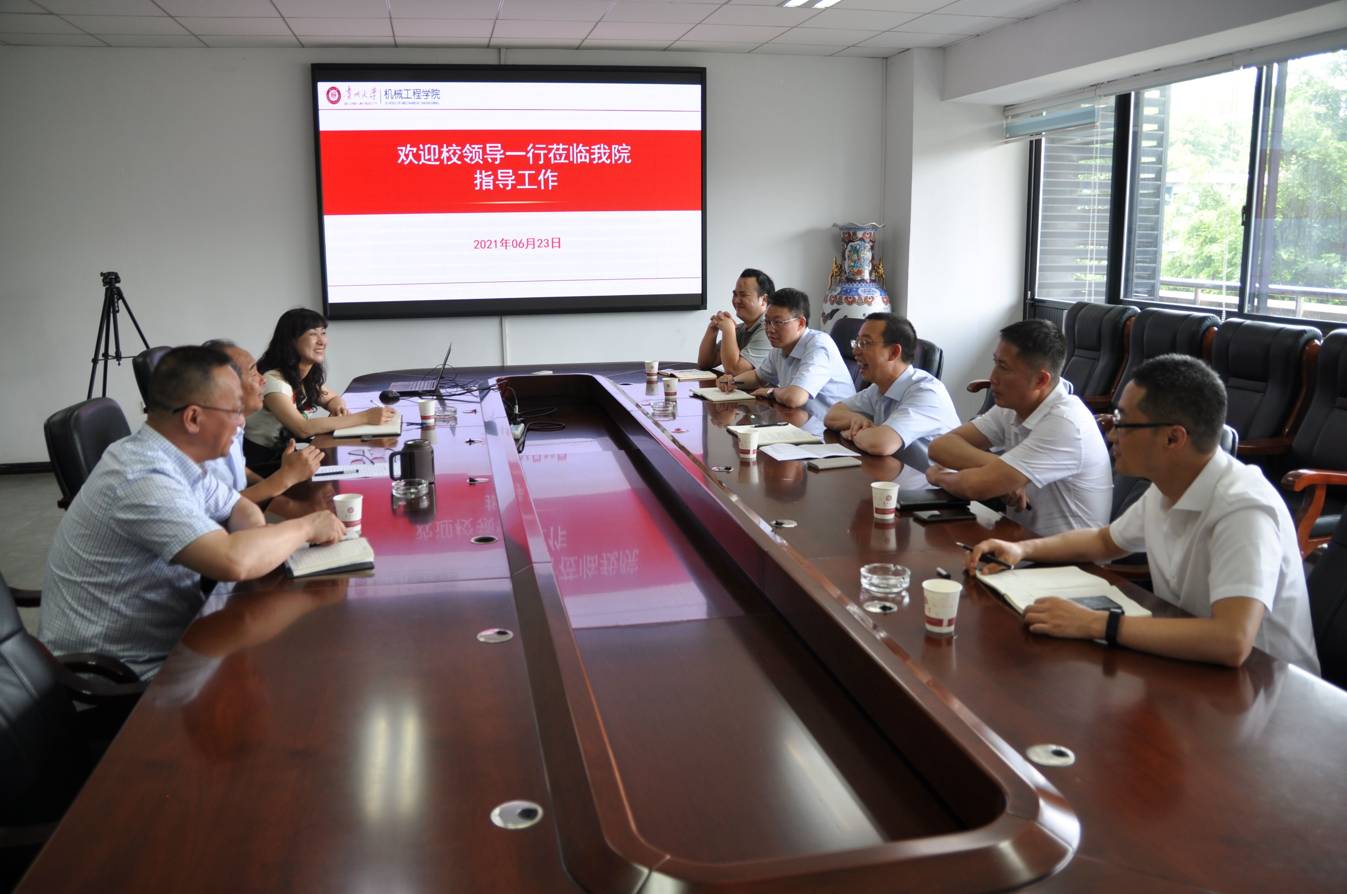 機(jī)械工程學(xué)院網(wǎng)站訊(記者 鄒醒佳)6月23日下午,貴州大學(xué)副校長(zhǎng)鄧朝勇、招生就業(yè)處正處級(jí)組織員王忠於、教務(wù)處副處長(zhǎng)向嵩(主持工作)、黨委學(xué)生工作部副部長(zhǎng)張小彬(主持工作)及相關(guān)人員赴機(jī)械工程學(xué)院調(diào)研就學(xué)院博學(xué)計(jì)劃推進(jìn)情況及就業(yè)工作進(jìn)行指導(dǎo)。機(jī)械學(xué)院黨委書(shū)記安明剛、副書(shū)記廖燁、副院長(zhǎng)何鋒及相關(guān)教師代表參加座談會(huì)。