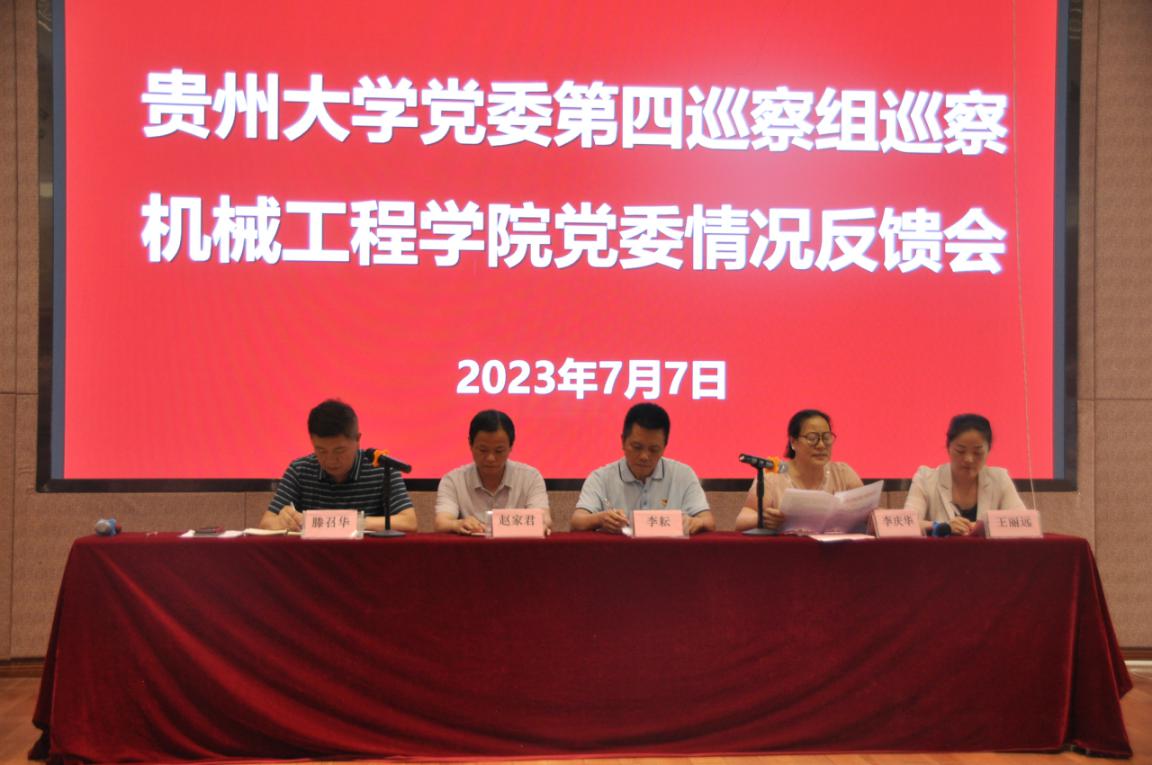 根據(jù)校黨委巡察工作領(lǐng)導(dǎo)小組的部署,2023年7月7日,第四屆校黨委第三輪巡察第四巡察組向機械工程學(xué)院黨委反饋巡察情況。第四巡察組副組長王麗遠傳達了校黨委常委會會議聽取巡察情況匯報時的有關(guān)精神,第四巡察組組長李慶華代表巡察組反饋了巡察情況,校黨委巡察工作領(lǐng)導(dǎo)小組成員、巡察辦主任李耘就巡察反饋意見整改落實工作提出明確要求,機械工程學(xué)院黨委書記滕召華主持反饋會議并就做好巡察整改工作作表態(tài)發(fā)言。
