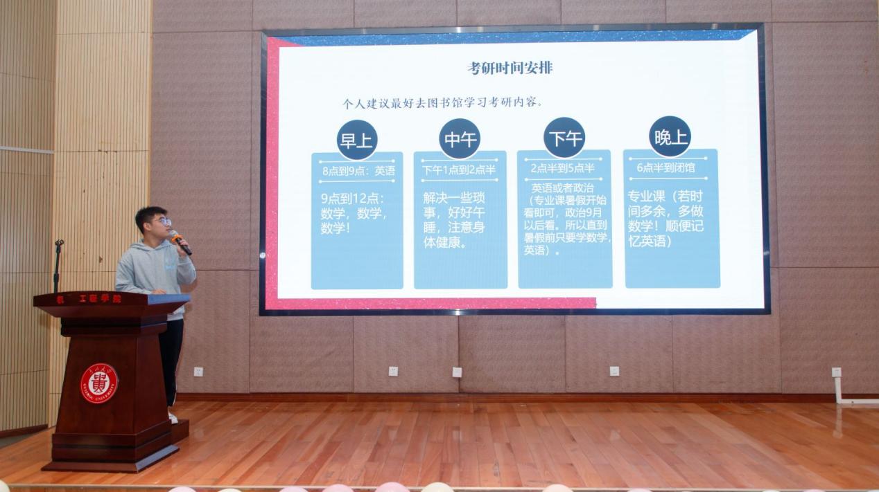 大會(huì)邀請(qǐng)材料成型及控制工程系保研學(xué)生王倩、考研學(xué)生韓池從選擇定位、計(jì)劃安排、學(xué)習(xí)方法等方面作升學(xué)經(jīng)驗(yàn)分享,希望學(xué)弟學(xué)妹研途不迷茫,持之以恒做好備考準(zhǔn)備,全力以赴戰(zhàn)到考研最后一刻。