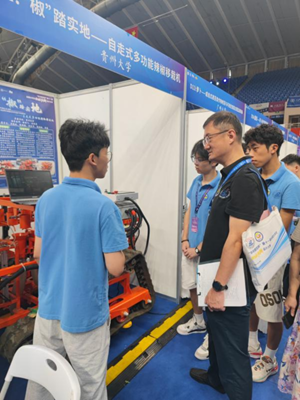 在此前的國賽第一階段評審中,貴大學子的表現(xiàn)同樣出色。在興農(nóng)機械賽道上,我校作品“辣椒井窖式自動移栽機”獲得國賽二等獎,“小型智能辣椒采收車”榮獲國賽三等獎;在仿生青蛙賽道上,我校作品“跳躍者”也獲得了國賽三等獎的榮譽。